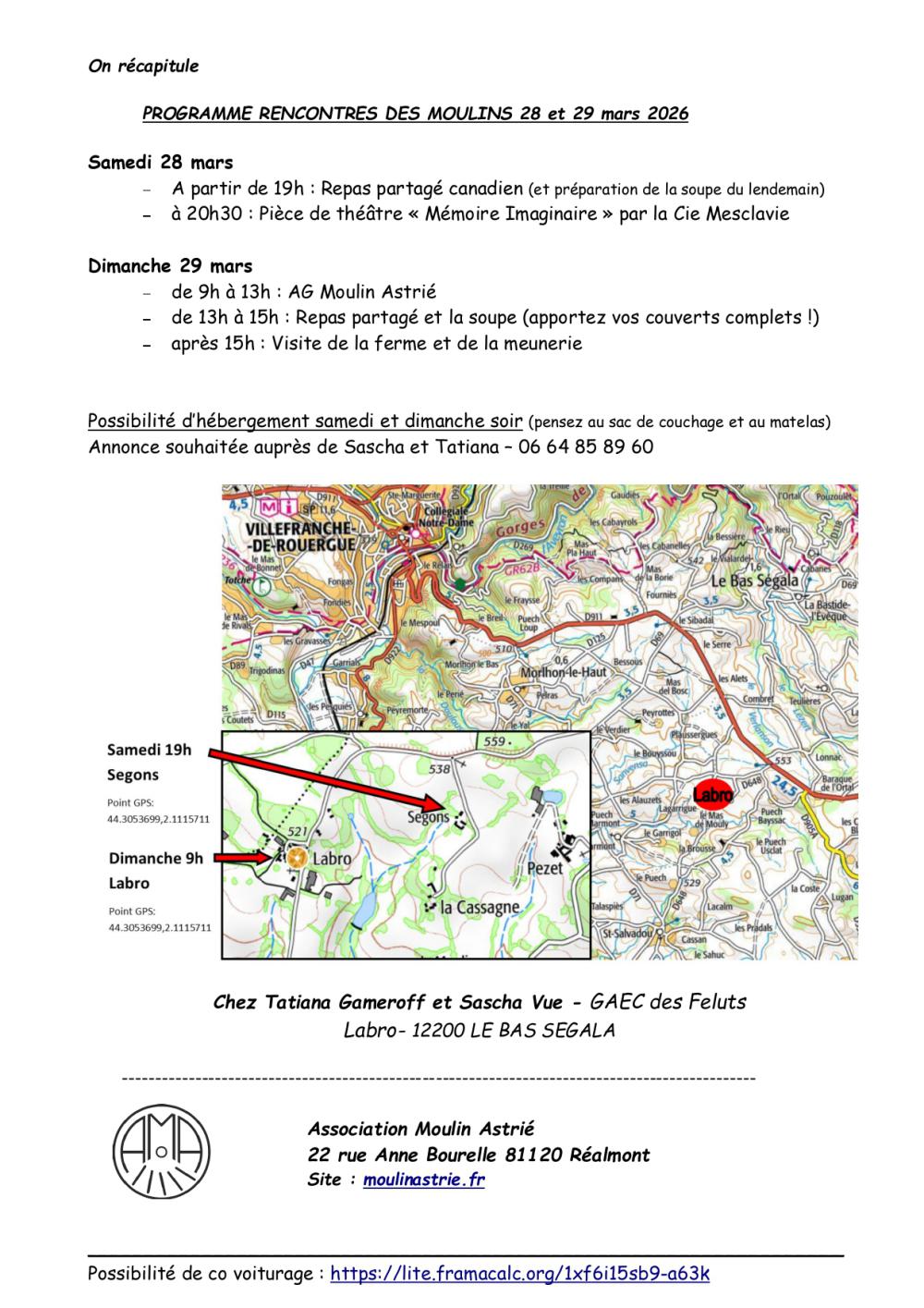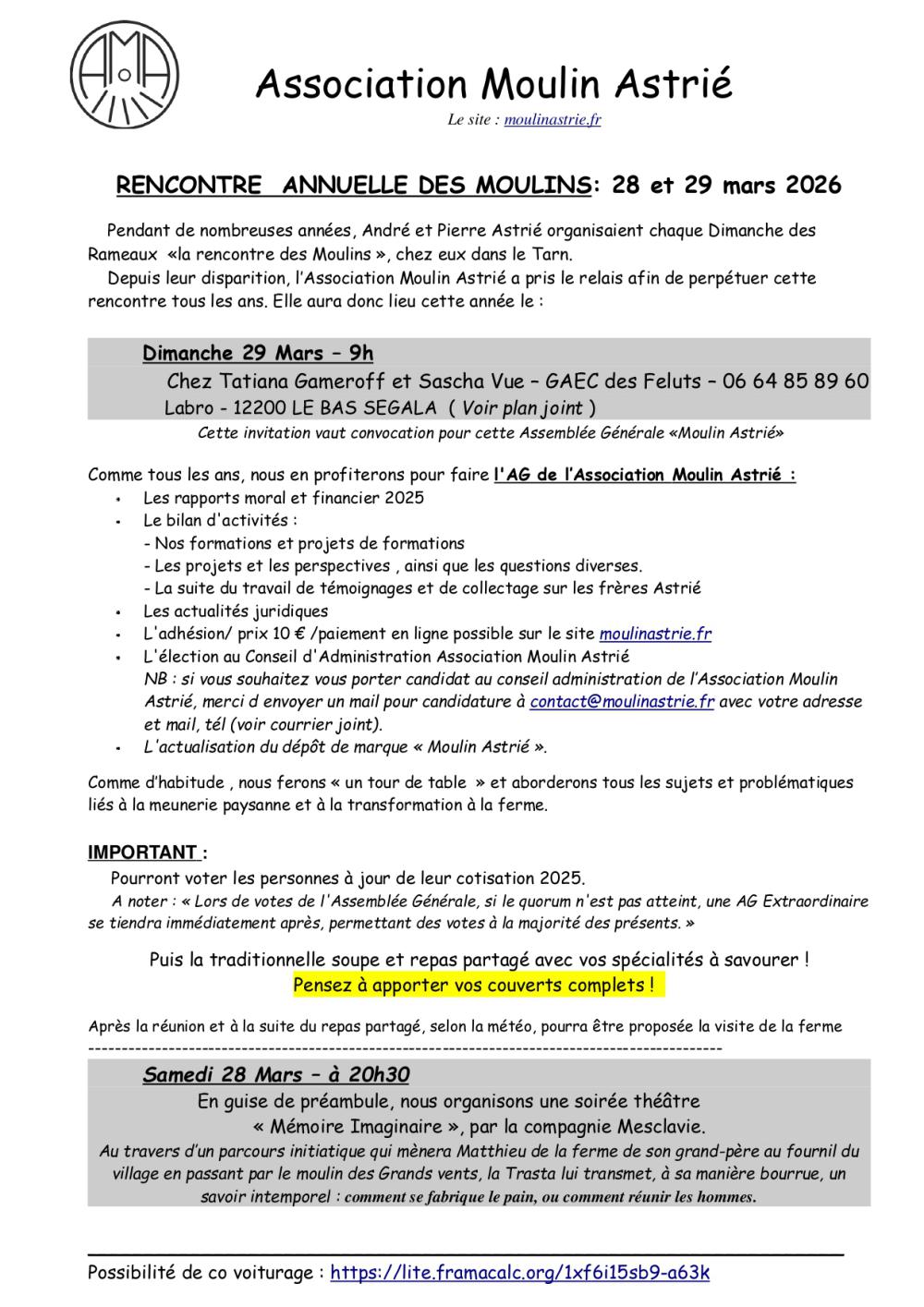 Prochaine rencontre annuelle des moulins : dimanche 29 mars 2026 dans l'Aveyron